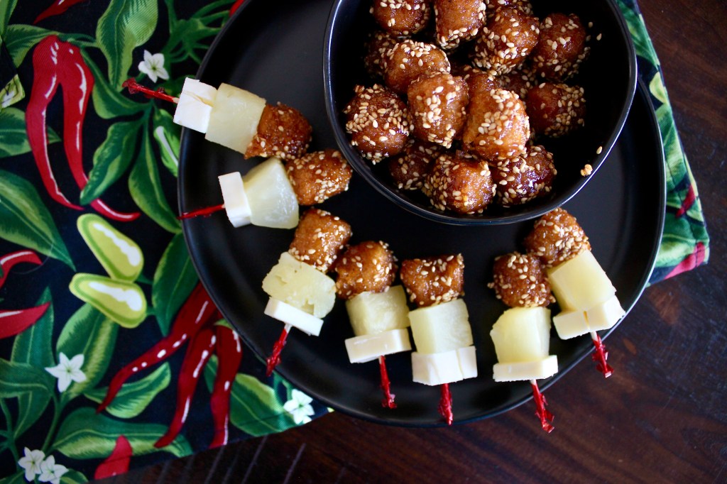 Everyone who knows us knows we’re pretty big fans of the Morningstar Farms plant based meats – especially their breakfast sausages and patties. Well, these “veggetizers” are a very close second!! They are delish on their own, but we love to cook em up with a little bit of an Asian twist. This recipe is super fast coming together in under 10 minutes, if you have 5 more minutes to spare, I highly recommend making mini skewers with them: we do white cheddar, pineapple and a popcorn chikn for the perfect salty sweet snack.