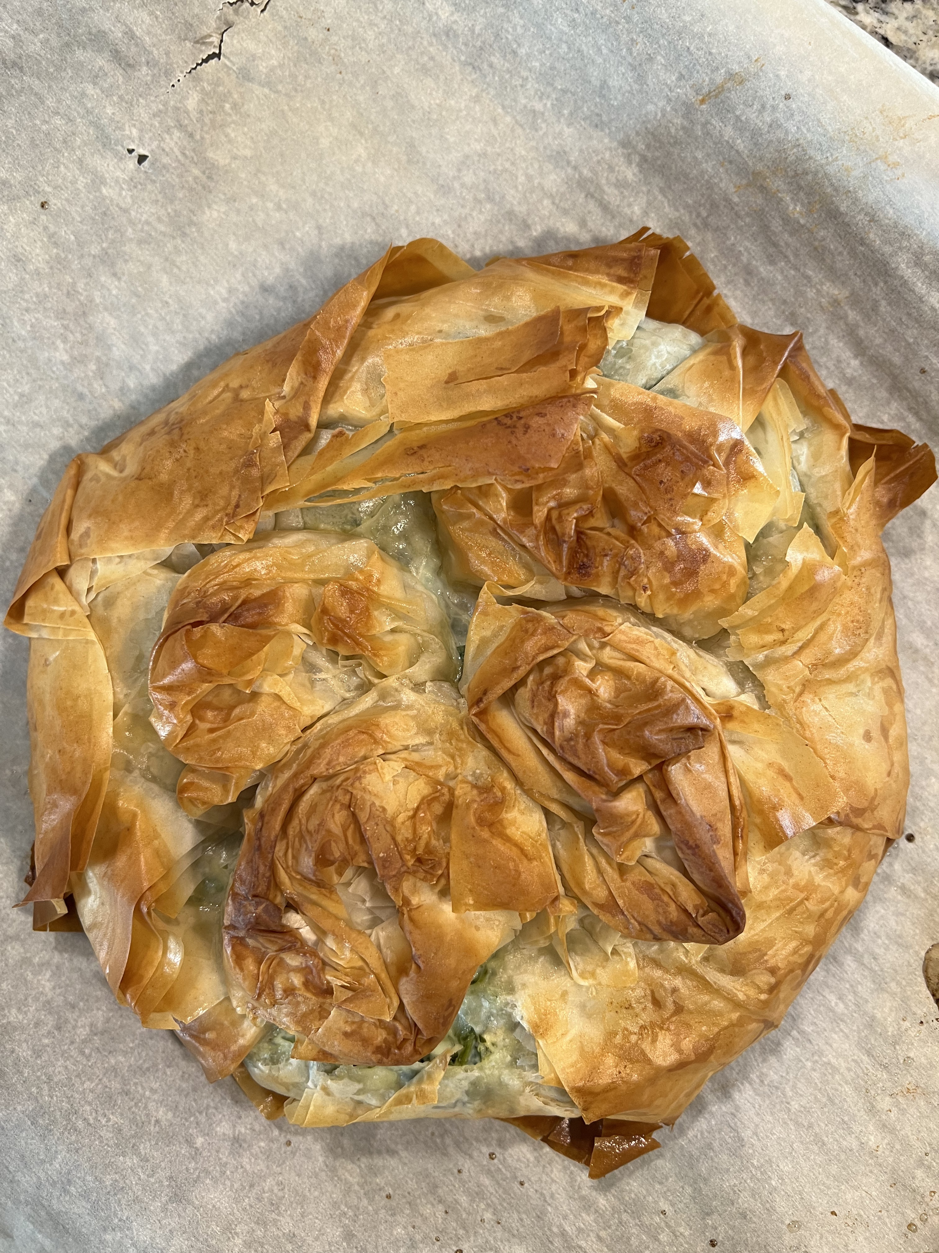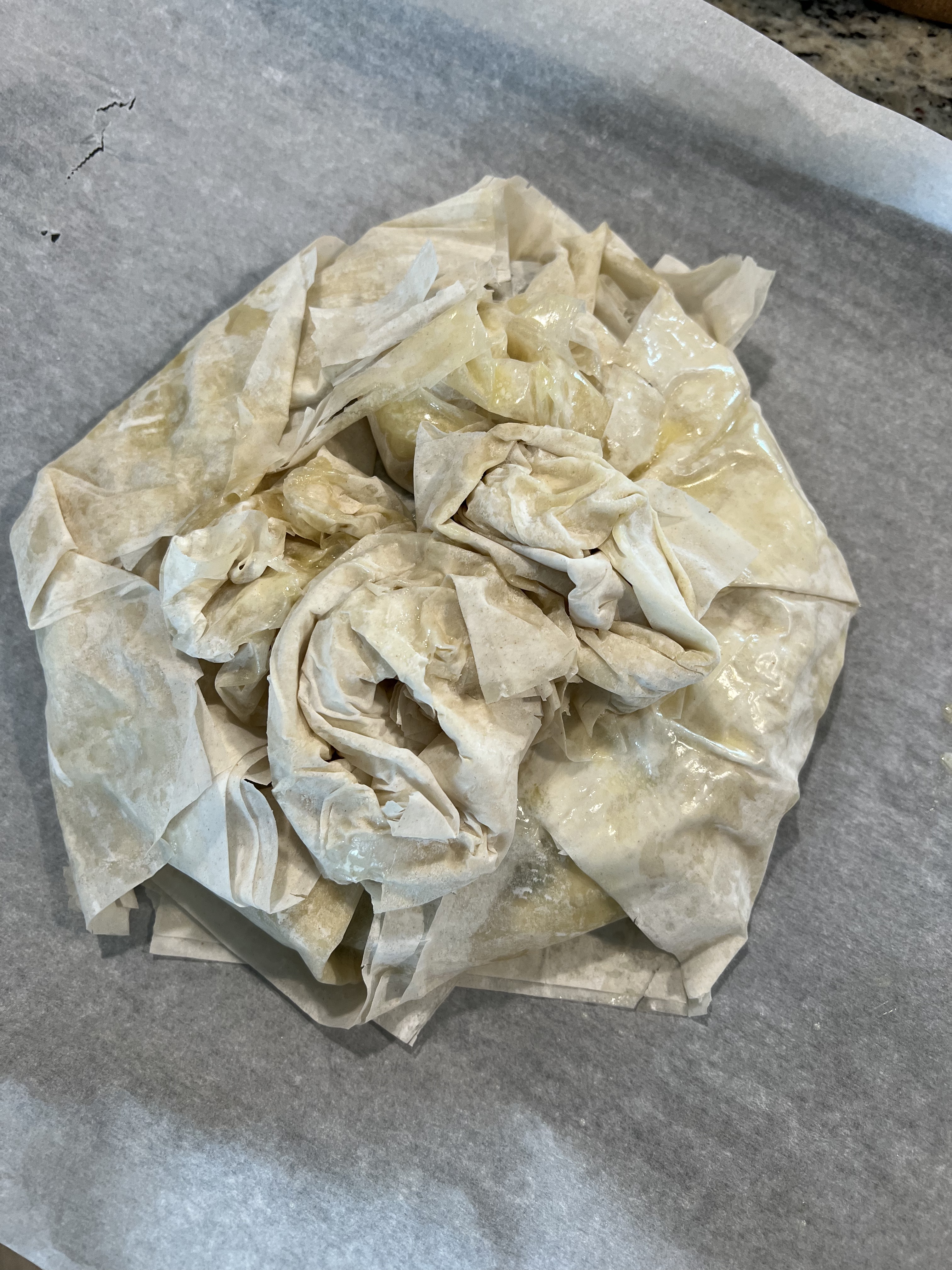 - I used Half Baked Harvest’s method of creating a star with the phyllo dough sheets and crinkling extra phyllo on the top: I love the look of the pie and her site has more instructions and step by step pictures